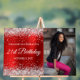 Créez votre propre fête de 21e anniversaire bienvenue acrylique signe pour votre ami ou parent. Customisez l'élégante calligraphie moderne avec une police moderne de style casquette pour créer votre propre enseigne personnalisée. L'arrière - plan présente une parties scintillant argent scintillante sur le bord supérieur avec un graphisme d'art numérique en métal brossé rouge sombre. La parties scintillant, brillante et métallique est créée avec des graphiques numériques qui s'impriment comme une photo sur votre panneau.