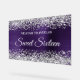 Créez votre propre Sweet 16 - 16ème anniversaire fête bienvenue acrylique signe pour votre ami. Customisez la calligraphie moderne et élégante avec une police moderne de style tout casquette en noir pour créer votre propre signe personnalisé. La parties scintillant argentée brillante et le papier métallique violet foncé sont créés avec des graphiques numériques qui s'impriment comme une photo sur votre panneau.