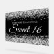 Créez votre propre Sweet 16 - 16ème anniversaire fête bienvenue acrylique signe pour votre ami. Customisez la calligraphie moderne et élégante avec une police moderne de style tout casquette en noir pour créer votre propre signe personnalisé. La parties scintillant gris argenté brillant contre le noir est créée avec des graphiques numériques qui s'impriment comme une photo sur votre panneau.