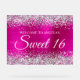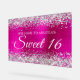Créez votre propre Sweet 16 - 16ème anniversaire fête bienvenue acrylique signe pour votre ami. Customisez la calligraphie moderne et élégante avec une police moderne de style tout casquette en noir pour créer votre propre signe personnalisé. La parties scintillant gris argenté brillant et le papier métallique rose chaud magenta sont créés avec des graphiques numériques qui s'impriment comme une photo sur votre panneau.