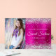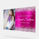 Créez votre propre 16ème anniversaire bienvenue 24x36 grand panneau acrylique pour votre fille. Remplacez l'exemple d'image par votre propre photo de famille. Customisez l'élégante calligraphie moderne avec une police moderne de style casquette pour créer votre propre enseigne personnalisée. L'arrière - plan dispose d'une parties scintillant en argent scintillant sur le bord supérieur avec un graphisme magenta en métal brossé rose chaud sombre feuille d'art numérique graphique. La parties scintillant, brillante et métallique est créée avec des graphiques numériques qui s'impriment comme une photo sur votre panneau.