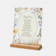 Présentez notre tableau de sièges en acrylique florale Whimsy Pastel, un complément à couper le souffle à votre décor mariage qui allie élégance et créativité. Ce panneau en acrylique sert de tableau de sièges unique et élégant, parfait pour les couples qui cherchent à ajouter une touche de fantaisie et de sophistication à leur journée spéciale. Conçu avec une base en acrylique transparente, ce tableau de sièges présente un superbe design floral pastel aquarelle qui saisit sans effort l'essence de la romance et de la beauté naturelle. Les fleurs délicates, peintes dans des teintes douces de rose, jaune, orange, bleu et vert, sont astucieusement disposées autour des bords, créant une atmosphère sereine et accueillante. Au coeur de cette création inspirée se trouve un cadre d'inspiration vintage, gracieusement rendu dans des tons doux crème et bleu doux. Ce cadre élégant renforce non seulement l'esthétique du panneau, mais il fournit également un point focal pour les noms de vos invités, qui peut être customisé pour correspondre à votre liste d'invités mariages unique. Le mélange harmonieux de fleurs d'aquarelle et de charme vintage assure que cette pièce sera un souvenir inoubliable pour les années à venir. Le design transparent du panneau acrylique ajoute une touche moderne au thème vintage, permettant à la beauté de votre lieu de briller tout en guidant vos invités à leurs sièges avec facilité. Laissez-vous séduire par le raffinement vintage et le charme enchanteur de l'aquarelle grâce à notre tableau de sièges en acrylique pastel à l'aquarelle florale. Customisez-le avec les noms de vos proches pour créer une expérience personnelle et inoubliable qui reflète la beauté et la joie de votre union.
