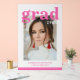 Photo Graduation Party Elégant Script moderne Acrylique Party Signer présentez votre photo préférée avec le texte rose simple "Grad (année)" et votre nom et les détails de graduation personnalisée sur le devant. Idéal pour les grands comme cadeau de remise de diplômes ou décoration de fête de remise de diplômes. Créé par ©2023 Evco Studio www.zazzle.com/store/evcostudio