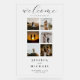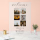 Créez votre propre panneau d'accueil mariage personnalisé avec votre collage photo personnalisé, typographie de script de calligraphie élégante et design minimaliste moderne.