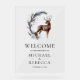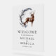 Amaze your guests with this elegant wedding welcome sign featuring a beautiful deer and rustic leaves with modern typography.