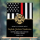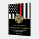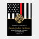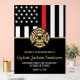 Cette conception comprend un drapeau de pompier avec des rayures noires et blanches, ainsi qu'une fine bande rouge. L'insigne d'un pompier est au-dessus de tous les détails du parti pour le pompier, le lieutenant ou le parti de retraite du chef qui prend sa retraite.