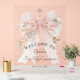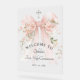 Un beau panneau de bienvenue pour la première communion de fille sur un panneau acrylique avec un ruban aquarelle rose pastel orné de fleurs roses. Une belle croix argentée est posée au-dessus du ruban en symbole du christianisme. Le modèle de texte attrayant dispose votre texte dans un style classique. Facile à personnaliser et à préparer pour cette occasion spéciale dans la vie de votre fille.