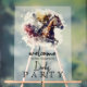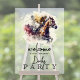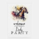 Élégant panneau de bienvenue ACRYLIC derby party présente une aquarelle illustrant une course de chevaux et de jockey vers la ligne d'arrivée et vos détails en lettres chic. CORRESPONDANCE d'objets dans notre collection.