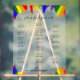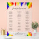 Carte de sièges LGBT acrylique avec traits de peinture arc-en-ciel et un arrière - plan blanc transparent. Carte de siège pour un mariage LGBTQ avec des coups de pinceau du drapeau de la fierté. Carte de sièges mariages lesbiennes avec des coups de pinceau dans la couleur du drapeau de la fierté. Tableau de sièges mariage gai avec polices de charme et traits de peinture aux couleurs de la fierté.