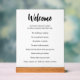 L'accueil apparaît dans un script en haut de cette maison règle signe pour une maison de location de courte durée. Une courte déclaration d'ouverture est sous le script. Ensuite, il y a huit règles pour une maison de location à court terme. Tout le texte est noir. Tout le texte peut être modifié pour refléter les règles uniques de votre location de vacances.