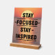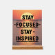 Transformez votre espace de travail avec notre superbe citation motivante "Restez concentré, restez inspiré" affichée sur une image de bureau en acrylique et en bloc de bois magnifiquement conçue, parfaite pour les musiciens et les créateurs. Cette pièce accrocheuse sert non seulement de rappel quotidien pour garder vivante votre passion, mais ajoute également une touche d'élégance à votre décor de bureau. La combinaison de l'acrylique élégant et du bois chaud crée une esthétique moderne mais accueillante, ce qui en fait un ajout idéal à tout studio ou espace de pratique. Que vous soyez compositeur de votre prochain chef-d'oeuvre ou que vous ayez simplement besoin d'un coup de pouce d'inspiration, cette image de bureau vous gardera motivé et concentré sur votre voyage musical. Elevez votre environnement et laissez couler votre créativité avec cette pièce de déco inspirante !