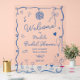 Bienvenue dans notre charmant Retro Fête des mariées bleu rétro Welcome Transparent Sign! Ce panneau enchanteur présente un design d'inspiration vintage avec des éléments fantaisistes tels que la nourriture, les boissons, les ballons, les coeurs et une jolie fleurs. Encadré par un ruban ondulé escarpé, ce panneau ajoute une touche de chaleur et de personnalité à votre décor de douche nuptiale. Avec des couleurs personnalisables et une police manuscrite, c'est la façon idéale de saluer vos invités et de donner le ton pour une fête joyeuse. Laissez les festivités commencer par ce signe d'accueil inoubliable Toutes les couleurs sont modifiables