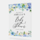 Bienvenue aux invités à votre événement avec ce panneau en acrylique de baby shower personnalisable. Il présente des guirlandes florales aquarelle de roses bleues, violettes et blanches, d'anémones et d'hydrangées. Personnalisez ce panneau de baby shower floral en ajoutant les détails de votre événement. Ce panneau d'accueil de baby shower d'hydrangea est parfait pour les baby showers de printemps et d'hiver.