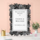Classic rencontre moderne dans ce panneau d'accueil mariage qui présente des illustrations de style gravure antique de roses en noir et blanc dressé contre un arrière - plan clair. Vos noms et la date du mariage sont clairs et faciles à lire en caractères gras et en noir sur le lettrage placé contre un arrière - plan blanc.
