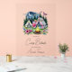 Bienvenue aux invités à votre week-end de bachelorette "Camping Bride" avec cette enseigne transparente. Avec une illustration fantaisiste de tentes étincelantes, d'un feu de camp, de cocktails et de fleurs vibrantes sous un ciel illuminé par la lune, ce design donne parfaitement le ton d'une fête rustique mais élégante. Entièrement personnalisable avec le nom de la mariée et les détails de l'événement, cette enseigne acrylique moderne est idéale pour accueillir les invités à l'entrée ou comme une superbe toile de fond photo. Une belle façon de célébrer le "Dernier sentier avant le voile".