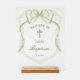 Panneau En Acrylique Sage Green Bow Crest Baptisme Bienvenue