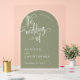 Tirez votre entrée mariage avec ce magnifique panneau d'accueil acrylique vert sauge, avec un arrière - plan en arc tendance et élégant script de calligraphie manuscrit. Conçu avec une esthétique moderne, ce panneau présente magnifiquement l'expression "Bienvenue au mariage de", vous permettant de le personnaliser avec vos noms et date spéciale. Une touche intemporelle et sophistiquée pour accueillir vos invités dans le style ! Toutes les couleurs sont modifiables. © Kimbellished, LLC