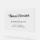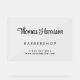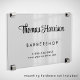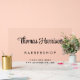 Signe acrylique clair personnalisé pour votre entreprise avec votre nom de société ou de marque dans un script de signature élégant et texte supplémentaire ci-dessous si désiré en lettrage moderne simple.