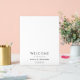 Décontracté Photo Overlay Script moderne Bienvenue au Mariage. Style minimaliste moderne pour accueillir vos invités. Remplacez simplement l'exemple de photo par le vôtre qui se trouve derrière un calque teinté gradué où le texte est partiellement recouvert dessus. Modifiez le texte au besoin.