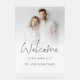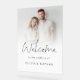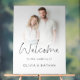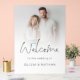 Revêtement photo moderne Script moderne Bienvenue au Mariage. Style minimaliste pour accueillir vos invités sur l'acrylique stylisé. Remplacez simplement l'exemple de photo par le vôtre qui se trouve derrière un calque teinté gradué où le texte est partiellement recouvert dessus. Bienvenue est dans un script stylé et le reste du texte que vous pouvez facilement personnaliser.