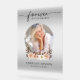 Floral Forever In our Heart Signe funéraire avec photo | Honorer la mémoire de votre bien-aimé avec cet élégant panneau acrylique d'accueil funéraire avec un bel arrangement floral et une photo personnalisée. Le design transparent aux tons doux et neutres crée un hommage intemporel pour les services commémoratifs, les célébrations de la vie ou les funérailles. Personnalisez avec le nom et les dates pour un souvenir vraiment significatif.