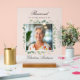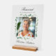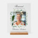 Siège Réservé - Eucalyptus Memorial Blanc Transparent Mariage Acrylique Signer Honorer la mémoire d'un être cher avec cet élégant Eucalyptus Celebration of Life Réservé Siège Signer, avec un cadre d'eucalyptus aquarelle douce et une zone photo personnalisable. Ce signe acrylique est une façon magnifique et digne de réserver un siège en mémoire d'amour à un mariage, funérailles, ou célébration de la vie. Le design minimaliste de verdure symbolise la paix, l'amour éternel et le souvenir, un hommage doux qui s'intègre harmonieusement à tout décor événementiel. Imprimé sur un acrylique clair de haute qualité et associé à un support en bois, ce morceau fait un souvenir intemporel pour les familles qui souhaitent honorer quelqu'un de spécial. Parfait pour : - Funérailles et célébration des services de la vie - Tables commémoratives et sièges commémoratifs - Mariages honorant les êtres chers - Élégante sympathie ou décoration commémorative