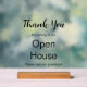 Merci d'être venu à notre Open House. Veuillez signer notre livre d'or. Vous pouvez modifier le texte d'affichage noir pour afficher un message personnalisé si vous le souhaitez. La ligne supérieure est un script élégant qui dit Merci. Le reste du texte n'est pas un script.