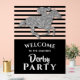 ACRYLIC Derby signe de bienvenue avec un faux cheval de parties scintillant argent sur bandes noires avec vos détails de fête en lettrage chic. CORRESPONDANCE d'objets dans notre collection.