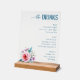 Panneau En Acrylique Sophisticated Blue Floral Beverage Menu