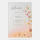 Cette jolie suite mariage avec sa palette de couleurs chaudes et ensoleillées, sa police de caractères manuscrite et ses arrangements délicats en fleur sauvage a un look intemporel et sophistiqué qui impressionnera vos invités et aidera à rendre votre journée spéciale inoubliable. Le panneau "Welcome", qui apparaît ici sur un arrière - plan à effet de pêche orange à verre dépoli rose, présente une bordure fleur sauvage aérée et fournit un modèle pour ajouter facilement vos noms, date mariage et message d'accueil. Recherchez ID1023 pour voir tous les produits de cette suite mariage.