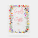 Les cartes et les cadeaux de mariée bohème bohème de fleurs sauvages brillantes signe de bienvenue de la douche de mariée bohème. Fleurs botaniques aux teintes rose, rouge, vert et violet inspirées des jardins rustiques fleur sauvage et aquarelle avec une végétation subtile et typographie de script boho moderne sur transparent voir à travers l'acrylique.