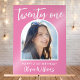 Une photo moderne simple signe 21ème anniversaire avec votre photo personnalisée et détails dans un élégant design minimaliste de couleur rose et blanc.