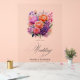 Symbole d'accueil du mariage à la Tangerine, rose chaud et violet royal. Idéal pour un mariage de jardin de printemps.