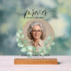 Le panneau acrylique funéraire moderne (avec ou sans porte-bloc en bois) contient le libellé "Forever in our Hearts", la photo de votre être aimé, son nom, et sa date de naissance/mort. CORRESPONDANCE d'objets dans notre collection.