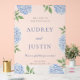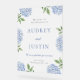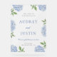 This beautiful design features blue hydrangea blooms and your custom text. Use the template form to add your information.