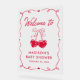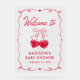 This acrylic baby shower welcome sign features “Welcome to” displayed in a handwritten red script, paired with coordinating red illustrations on a clear acrylic background. Framed by a hand-drawn ribbon border with heart accents, the design offers a clean and polished look that complements sweetheart and Valentine-themed celebrations. The sign can be personalized with the mother-to-be’s name and baby shower date shown below the artwork. Sleek and stylish, this acrylic welcome sign is perfect for greeting guests at the entrance to a Valentine or sweetheart-themed baby shower.