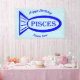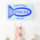 Cette étonnante bannière présente un contour de poisson bleu avec de jolis détails à l'intérieur. Il y a aussi le texte qui dit Pisces à l'intérieur du contour du poisson. Ce design est idéal pour les personnes ayant un anniversaire entre le 19 février et le 20 mars. Il y a du texte personnalisable pour que vous puissiez personnaliser cette bannière.