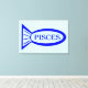 Cette impressionnante impression de toile présente un contour de poisson bleu avec de jolies détails à l'intérieur. Il y a aussi le texte qui dit Pisces à l'intérieur du contour du poisson. Ce design est idéal pour les personnes ayant un anniversaire entre le 19 février et le 20 mars.
