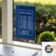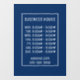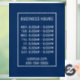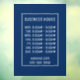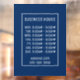 Bleu avec bordure blanche, panneau d'heures d'ouverture pour fenêtre.
