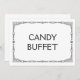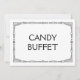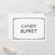 Sobre et élégante enseigne mariage de style Art déco noir et blanc "Candy Buffet". Ce panneau mariage "Candy Buffet" a l'air très bien imprimé sur un papier mat, si vous avez besoin de quelque chose de plus traditionnel utiliser le Laid, Lin ou Colonné, pour une sensation rustique utilise le Kraft Artistique, si vous voulez ajouter une touche de glamour, utilisez le Luxe. En cliquant sur le bouton "customiser", vous pouvez accéder à l'outil d'édition et choisir une couleur arrière - plan différente. Il s'agit d'un panneau de carte plat de 5" x 7", sera vraiment élégant dans un cadre d'image.