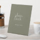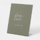 Cette enseigne moderne chic et verte d'hôtes mariage est parfaite pour un mariage simple. Le design boisé boho comprend une typographie bohème rustique unique et élégante dans une couleur verte boisée minimale. Ce guéridon peut être utilisé pour un mariage, une douche nuptiale ou tout événement ou fête.