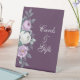 Ce panneau de piédestal mariage violet foncé présente des pivoines d'aquarelle blanches et violettes, de la lavande, des formes géométriques et de la typographie. Idéal pour un mariage extérieur. Trouvez les articles correspondants dans Lavender Purple Floral Mariage Collection.