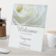 Elégant et moderne, panneau de piédestal mariage rose blanche. Le texte peut être personnalisé pour votre jour de mariage ou tout type de célébration.