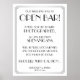Art déco noir et blanc Grand Gatsby mariage Open Bar affiche avec cadre argenté et texte personnalisable - vous pouvez ajouter votre texte, nom de mariée et mariée et date de mariage. Les dimensions de l'affiche sont de 18 pouces par 24 pouces (vertical).