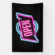 Bannière extérieure de néon amusant pour les entreprises, événements, stands de concession, et plus encore. Le design comporte un cadre néon de style rétro avec du texte en diagonale "ouvert" sur arrière - plan noir.