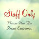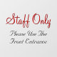 Ce design élégant comporte les messages "Personnel uniquement" et "Veuillez utiliser l'entrée avant". Il peut être utilisé par une entreprise pour avertir les clients et les visiteurs d'utiliser une entrée différente.