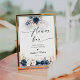 Panneau de la barre de fleurs bleu marine et Rose poussiéreux. Cette invitation à la douche nuptiale élégante et élégante présente de magnifiques aquarelles peintes à la main Marine bleu et Dusty Rose Floral. Trouvez les articles correspondants dans la collection florale Rose bleu marine et Dusty.