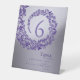 Cette carte de numéro de table mariage est conçue avec un cadre élégant et décoratif orné à partir de motifs damassés complexes dans les tons violet et lavande. Le damas tourbillonnant forme une bordure circulaire, enfermant gracieusement le grand numéro de table au centre. La typographie équilibre la clarté moderne avec une touche de raffinement, tandis que le mot "Table" est stylisé dans un script fluide pour améliorer l'aspect romantique et formel. La combinaison de détails damassés ornés, de tons violets et d'accents lavande crée une atmosphère sophistiquée, faisant de cette carte numéro de table non seulement fonctionnelle mais aussi une partie frappante de la décoration mariage. Parfait pour les réceptions à thèmes élégants ou formels, il ajoute charme et coordination à l'ensemble des tables.