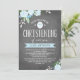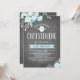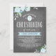 Invitation de Christening personnalisable avec photo représentant des fleurs d'aquarelle sur un arrière - plan en damier.