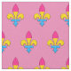 Tissu avec un motif sans soudure avec fleur de lis dans les couleurs du drapeau de la fierté de la pansexualité, sur un arrière - plan rose; fournitures artisanales bi orgueil